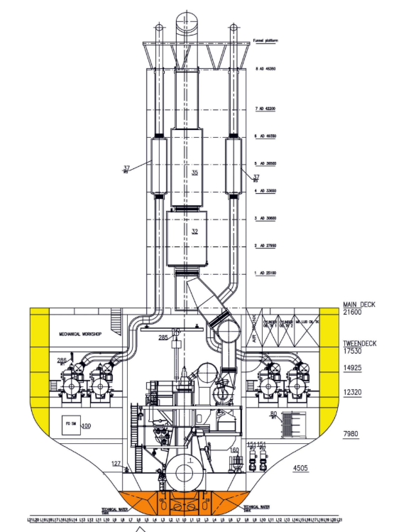 জাহাজের বিদ্যুৎ-সাপ্লাইয়ের জন্যে থাকে তিন-চারটা জেনারেটর। থাকে স্টীম-বয়লার। জাহাজের সাইজ এবং কি কাজে ব্যবহার করা হবে সেই হিসাবে বয়লারের সংখ্যা ও ক্যাপাসিটি ঠিক করা হয়। আগেকার ষ্টীম-টারবাইন জাহাজগুলোর প্রপেলারও ঘুরাতো বয়লার থেকে তৈরী ষ্টীমে। এখন প্রপেলার না ঘুরালেও, অনেক তেলের ট্যাঙ্কারে কার্গো-পাম্প চালানো হয় ষ্টীম-টারবাইন দিয়ে। এছাড়াও ষ্টীম দিয়ে অনেক কিছুই করা হয় – বিশেষ করে তেল গরম করা, পানি গরম করা ইত্যাদি অনেক কাজ।