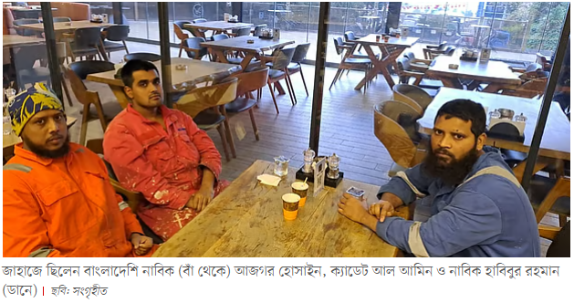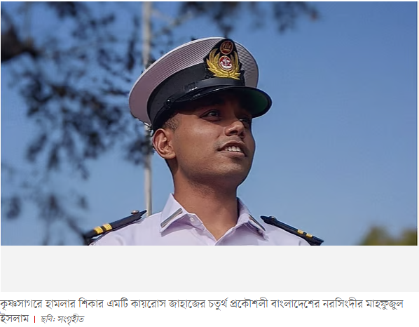 প্রথম আলোর প্রতিবেদনে নরসিংদীর বাসিন্দা, জাহাজটির চতুর্থ প্রকৌশলী মোঃ মাহফুজুল ইসলাম জানান—