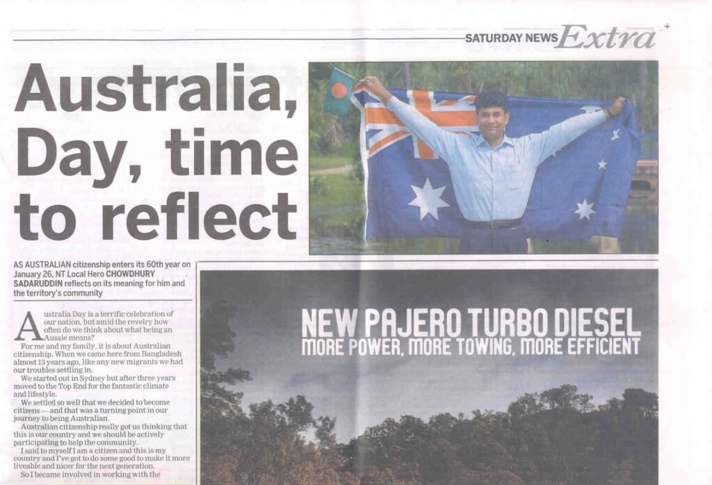 Chowdhury Sadaruddin: I currently serve as Chairman of the Islamic Council of the Northern Territory. We worked hard to establish the Palmerston Mosque and a city mosque for working Muslims. I’m also involved with the Australian Federation of Islamic Councils at the national level and with the Bangladesh Association of the Northern Territory, which I helped found.