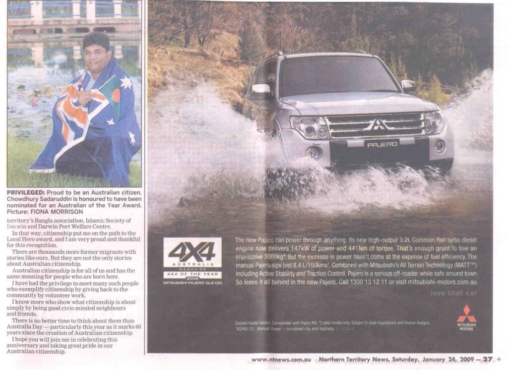 - Chowdhury Sadaruddin awarded the NT Local Hero 2009 – PriyoAustralia.com.au