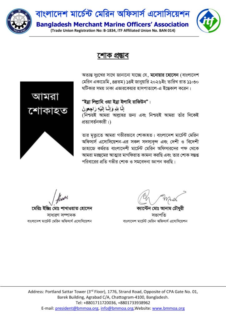 On behalf of the wider Bangladeshi maritime fraternity at home and abroad, we extend our deepest condolences to his family, friends, and colleagues. We pray for the eternal peace and forgiveness of his departed soul. May Almighty Allah grant him Jannatul Ferdous and provide strength, patience, and comfort to his bereaved family during this difficult time.